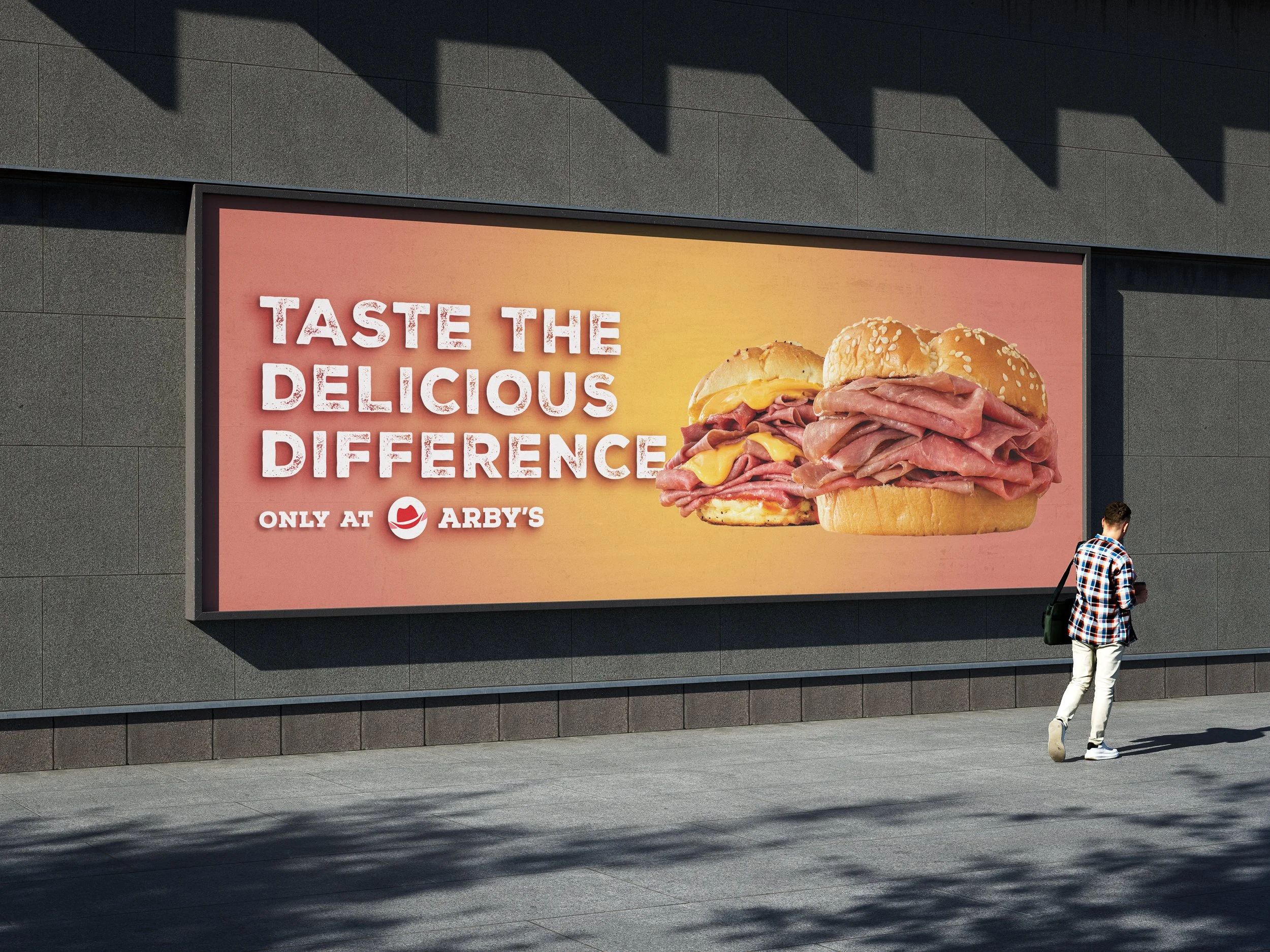 To start, I looked into the history of Arby’s. The name comes from the initials of its founders, the (R)affel (B)rothers. They initially wanted the name “Big Tex”, but that was taken by another business. The name, Arby’s, was paired with an outlined cowboy hat logo, simply because Westerns were popular at the time. This logo, while changing slightly over the years, has been the same since its opening in 1964. With such a long history, I checked out some of Arby’s vintage ads and promotional materials, one of which mentioned “deliciously different” within the advertisement copy, which sparked an idea.
