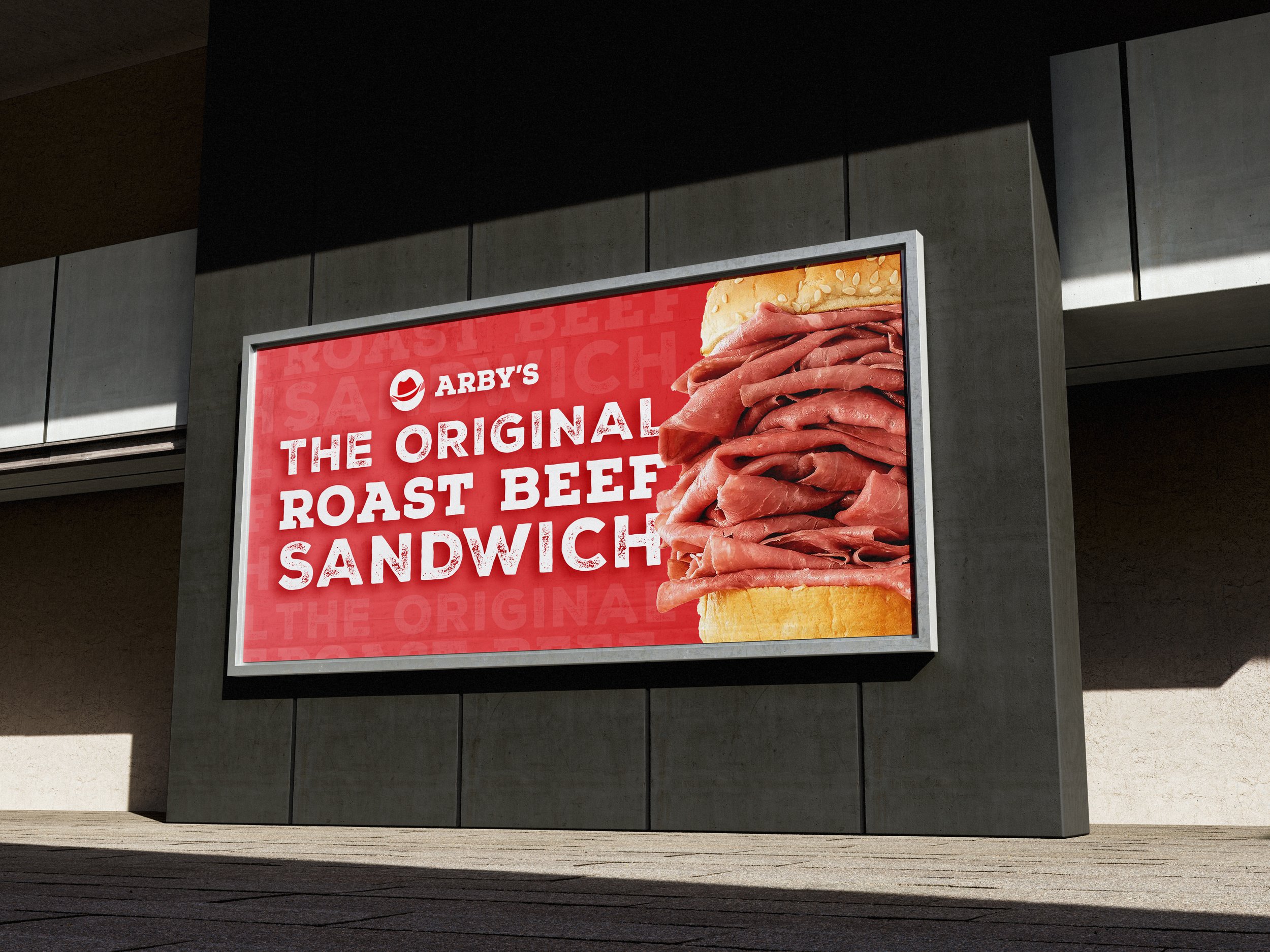 The cowboy hat is an Arby’s staple, so I wanted to keep it but give it a 2025 revamp. The outlined ten-gallon hat had its charm, but if we wanted to appeal to a new audience and separate ourselves from the current view, we needed something new. I adjusted the brand colors to align better with other fast-food restaurants in the space while also adding a light pink/salmon as a nod to the restaurant’s roast beef. This new design also changed the format of the logo and icon to be horizontal instead of vertical, aligning better with what is more commonly seen in the industry.