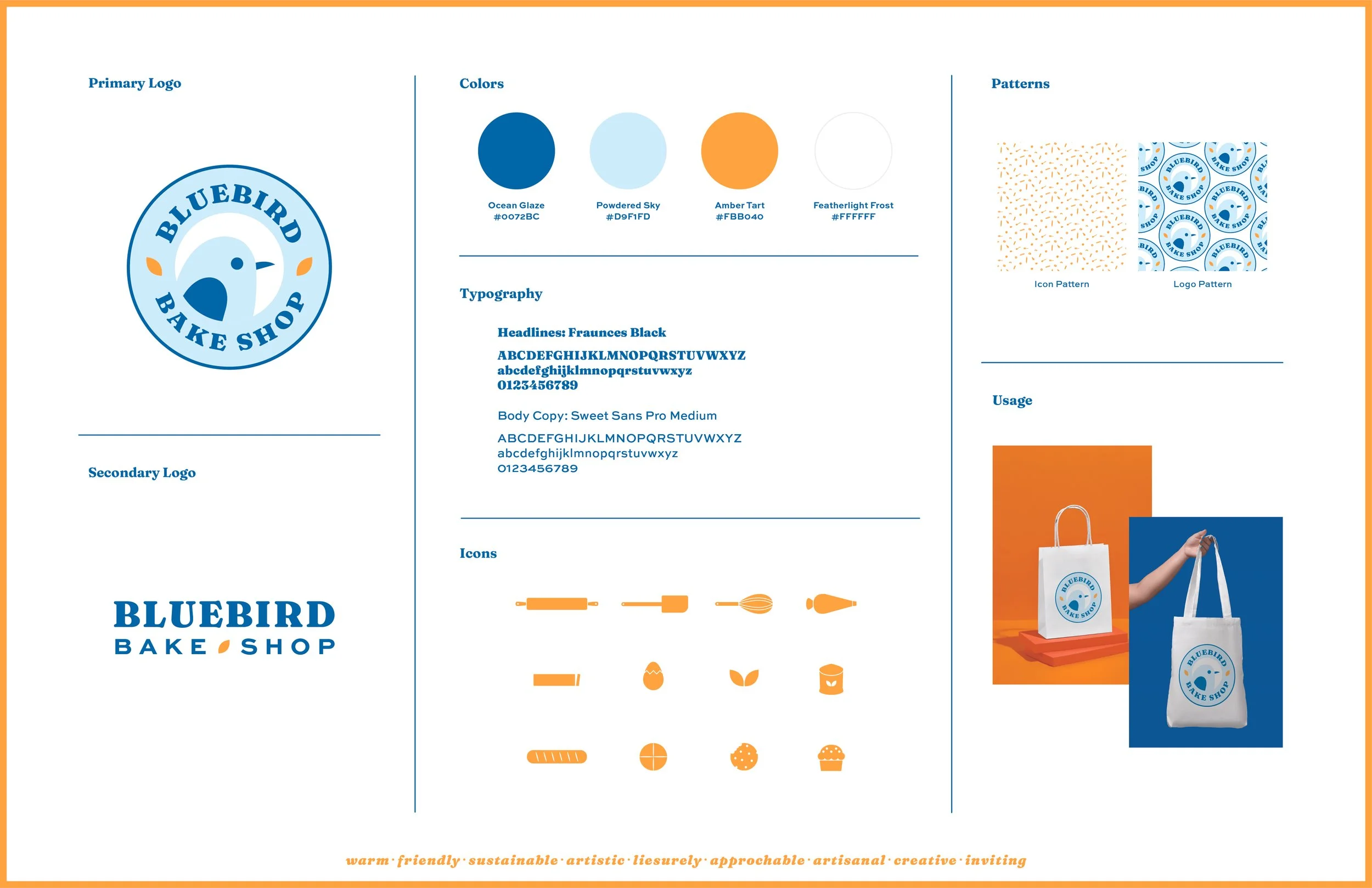Since the business name has 'bluebird’ in it, I focused my research on the appearance of bluebirds. Their primary colors, blue and orange/yellow, led the final color palette. I went through a dozen bird iterations to change a real picture of a bluebird into a vector icon that was accurate but still fun and friendly.