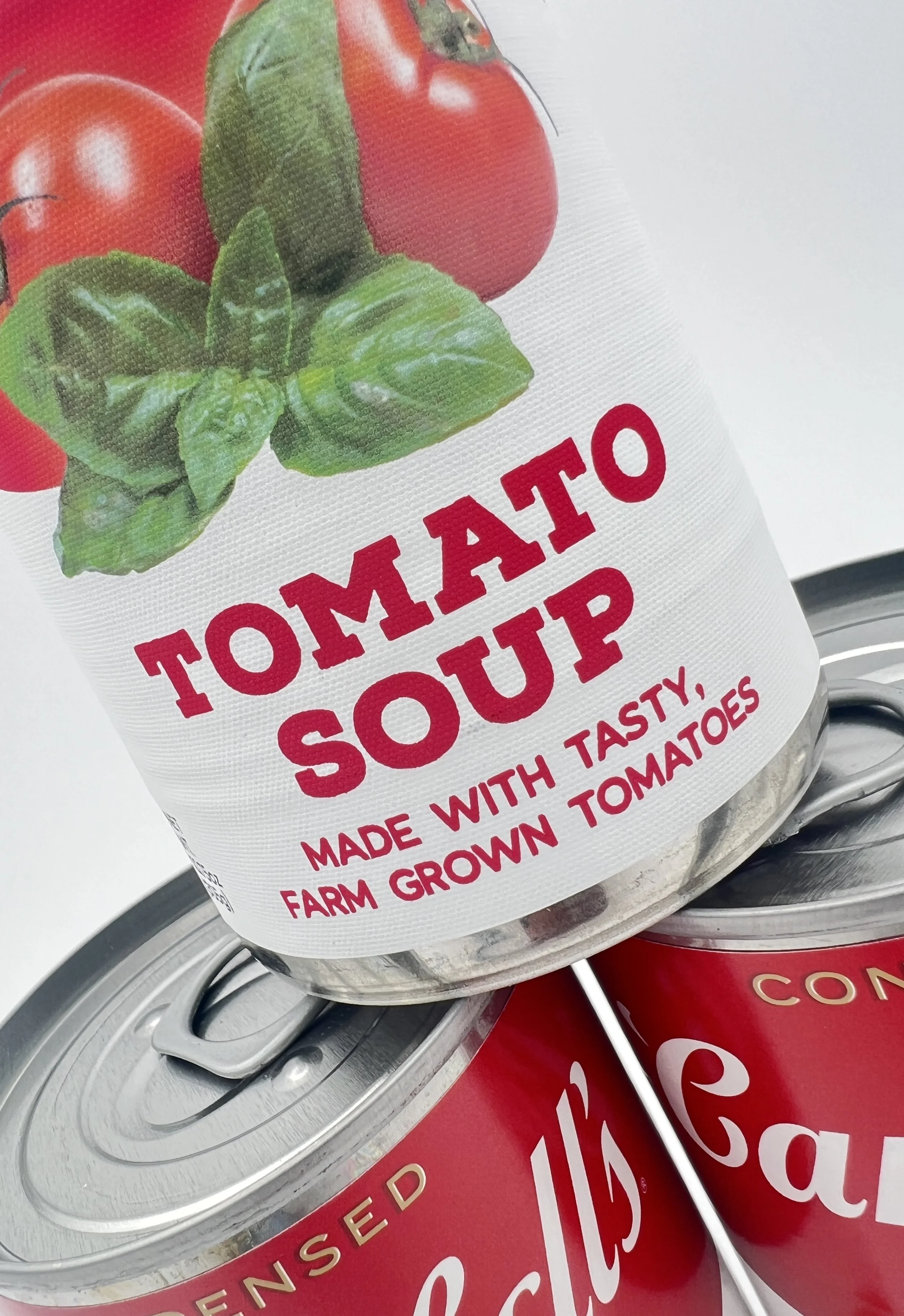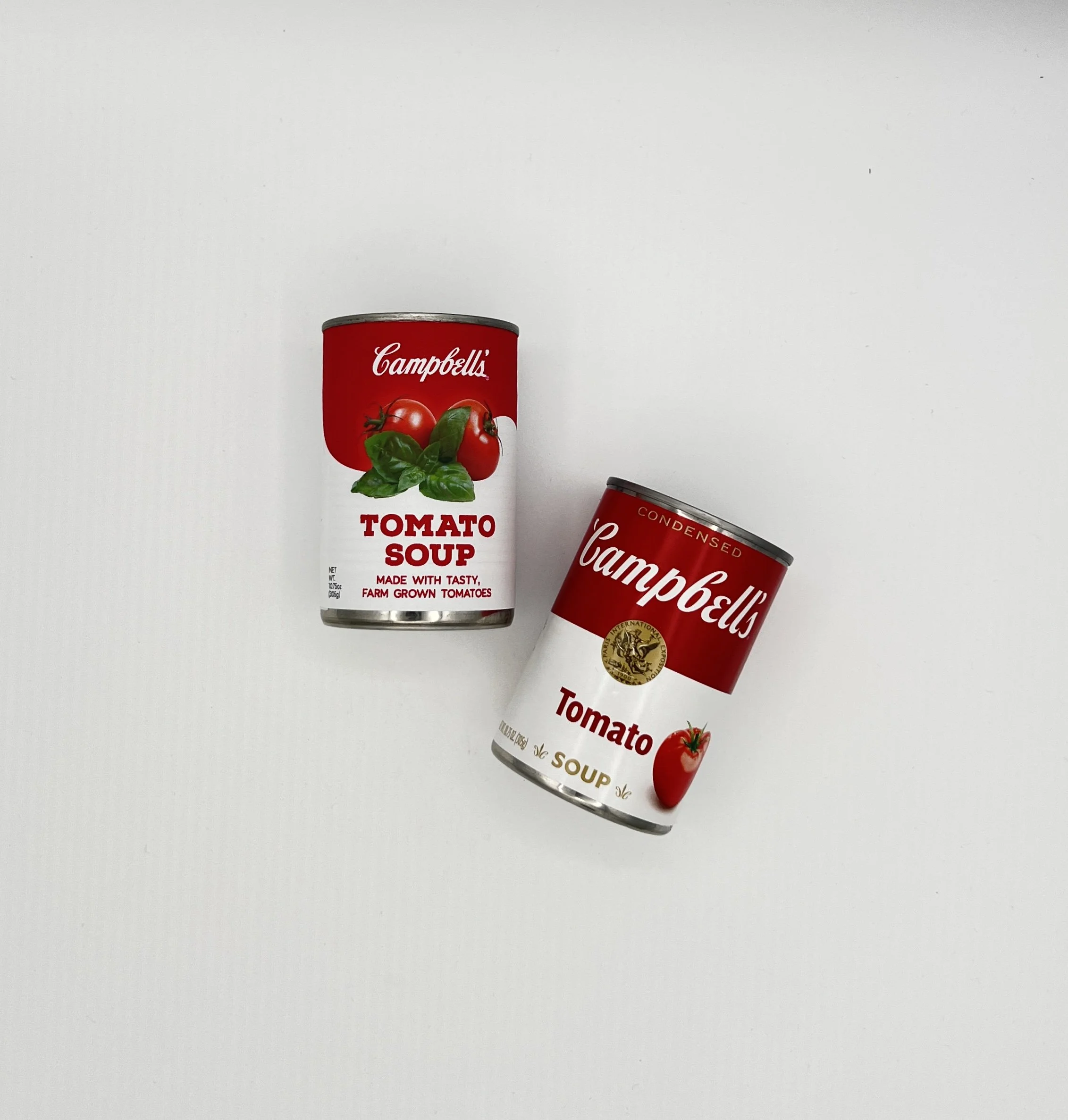 The Campbell’s Company (prev. Campbell Soup Company) is a processed and packaged food company known for a variety of products, including crackers, sauces, and most notably, soups. My redesign was focused on their classic red and white soup cans (specifically their Tomato Soup). The current packaging is very minimalist; red and white cans with the soup flavor written in a simple, sans serif type. Because their colors are so well-recognized, I wanted to keep the red and white, and also add pictures of the soup or its ingredients on the packaging. Visuals will often capture a customer’s attention before words will, something that Campbell’s soup cans falls a bit short on. Having a refreshed, more modern design, could increase appeal while still keeping the Campbell’s familiarity.