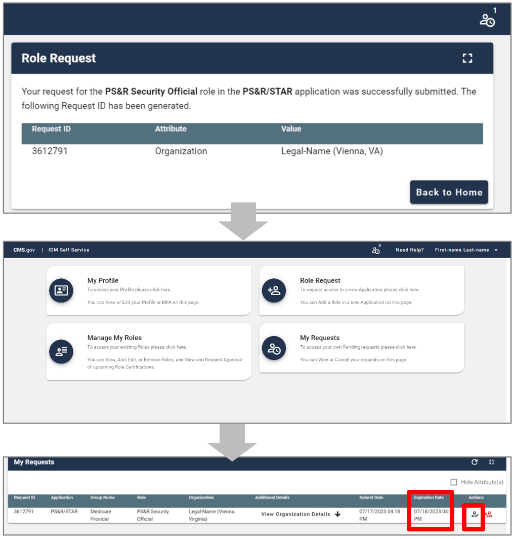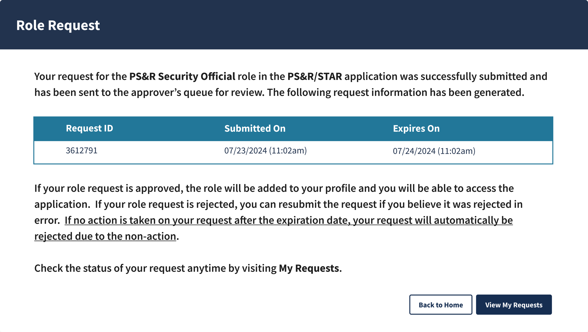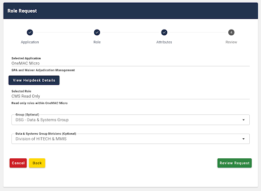 Users need to be granted access to specific CMS applications as members of a certain role or group. To do this, they must fill out a role request form through their account dashboard.
