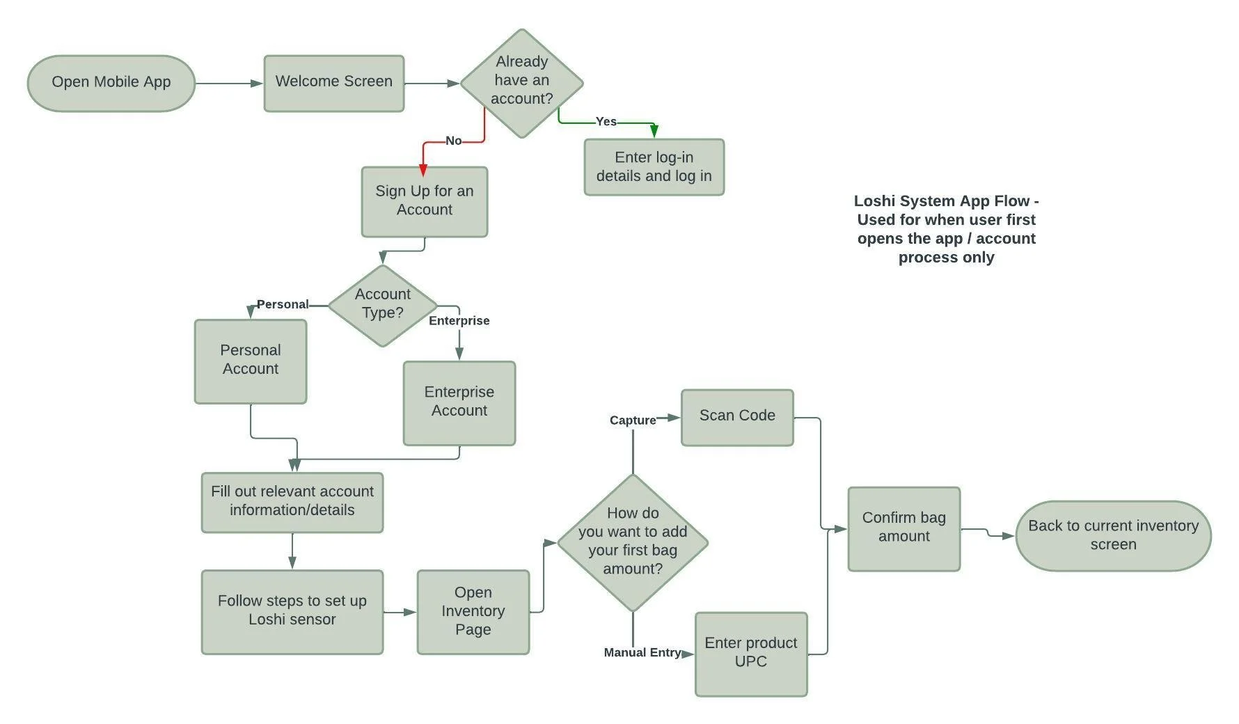 User flow analysis: User flow diagrams were crafted to map out the app's navigation from both user and enterprise perspectives. This step focused on identifying and addressing any usability issues and missing screens.