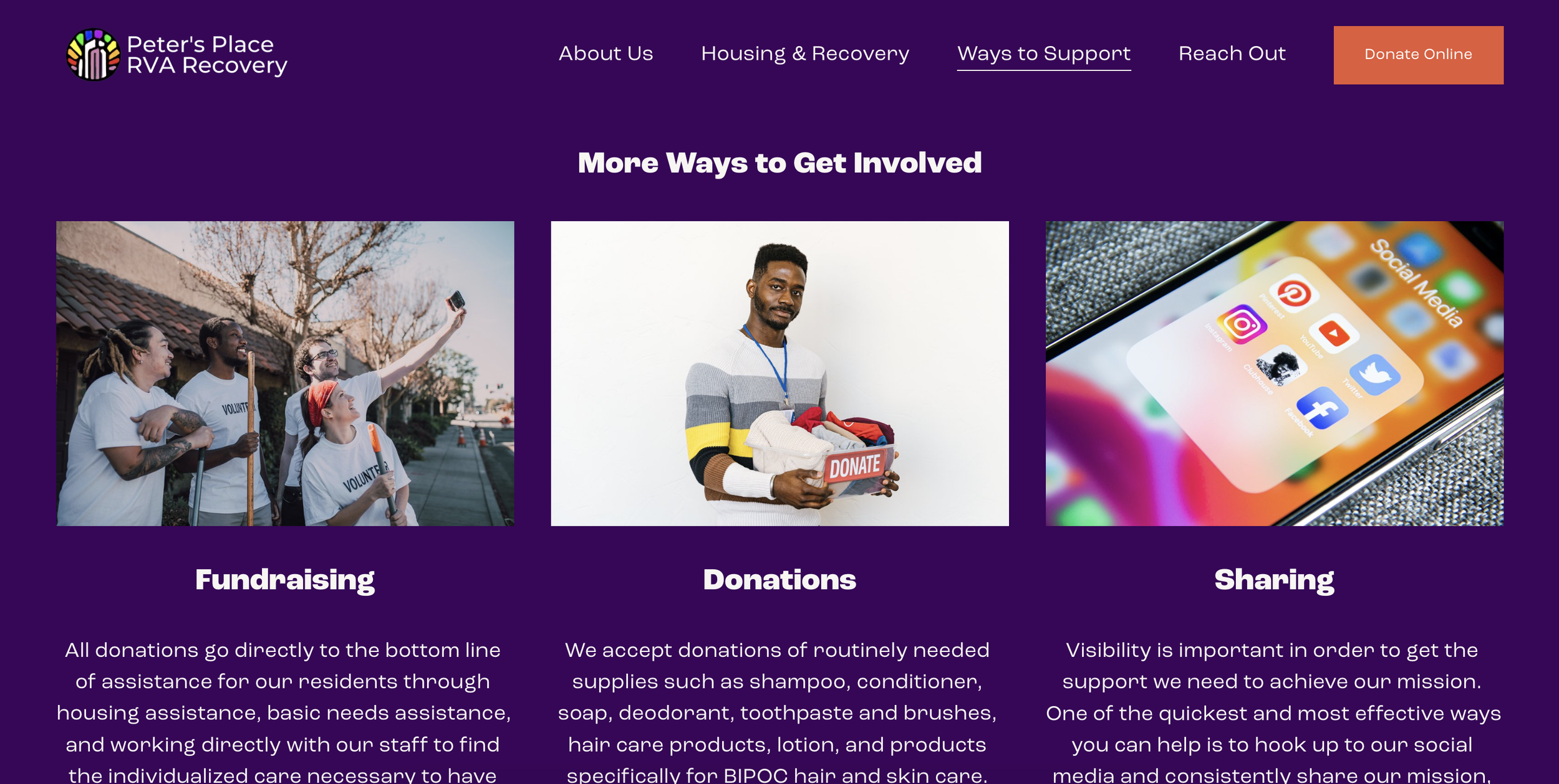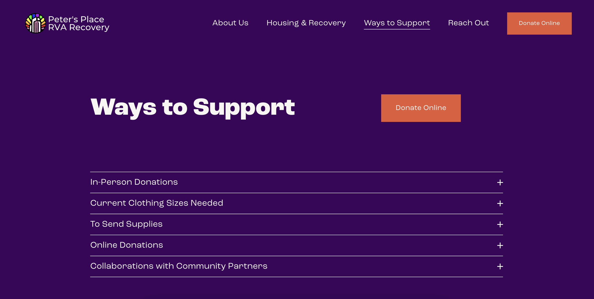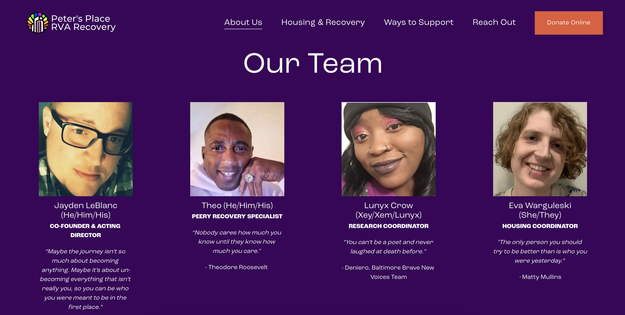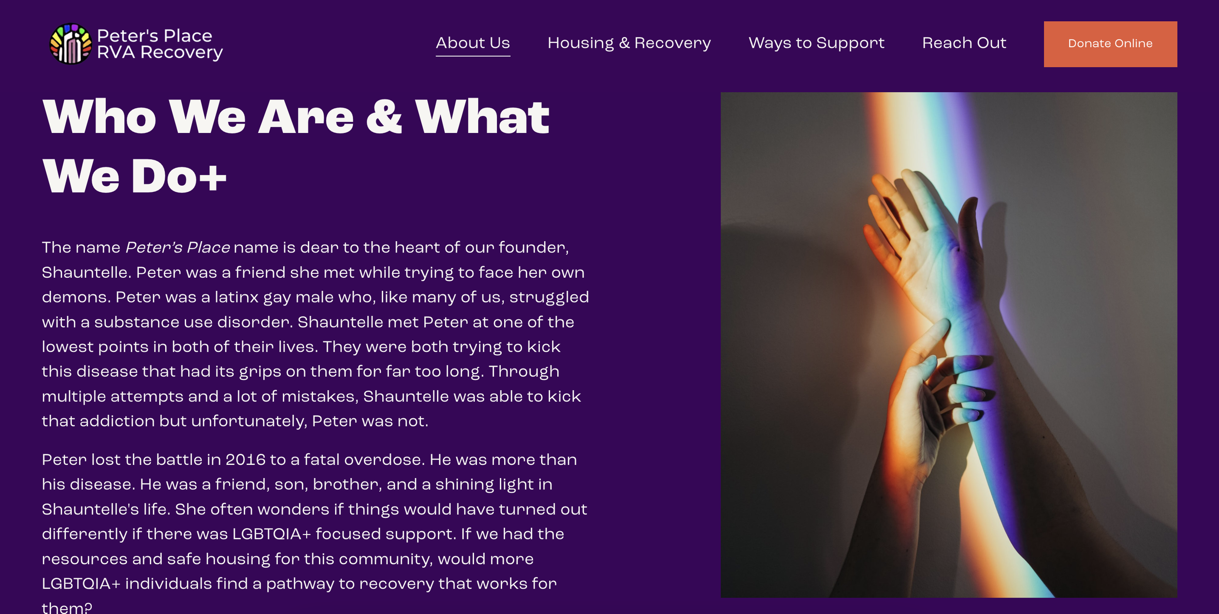Peter’s Place RVA Recovery provides compassionate and accessible housing, resources, and trauma-informed care to LGBTQIA+ individuals seeking individualized recovery support. PPRVA has since been rebranded as The Dandelion Hive.