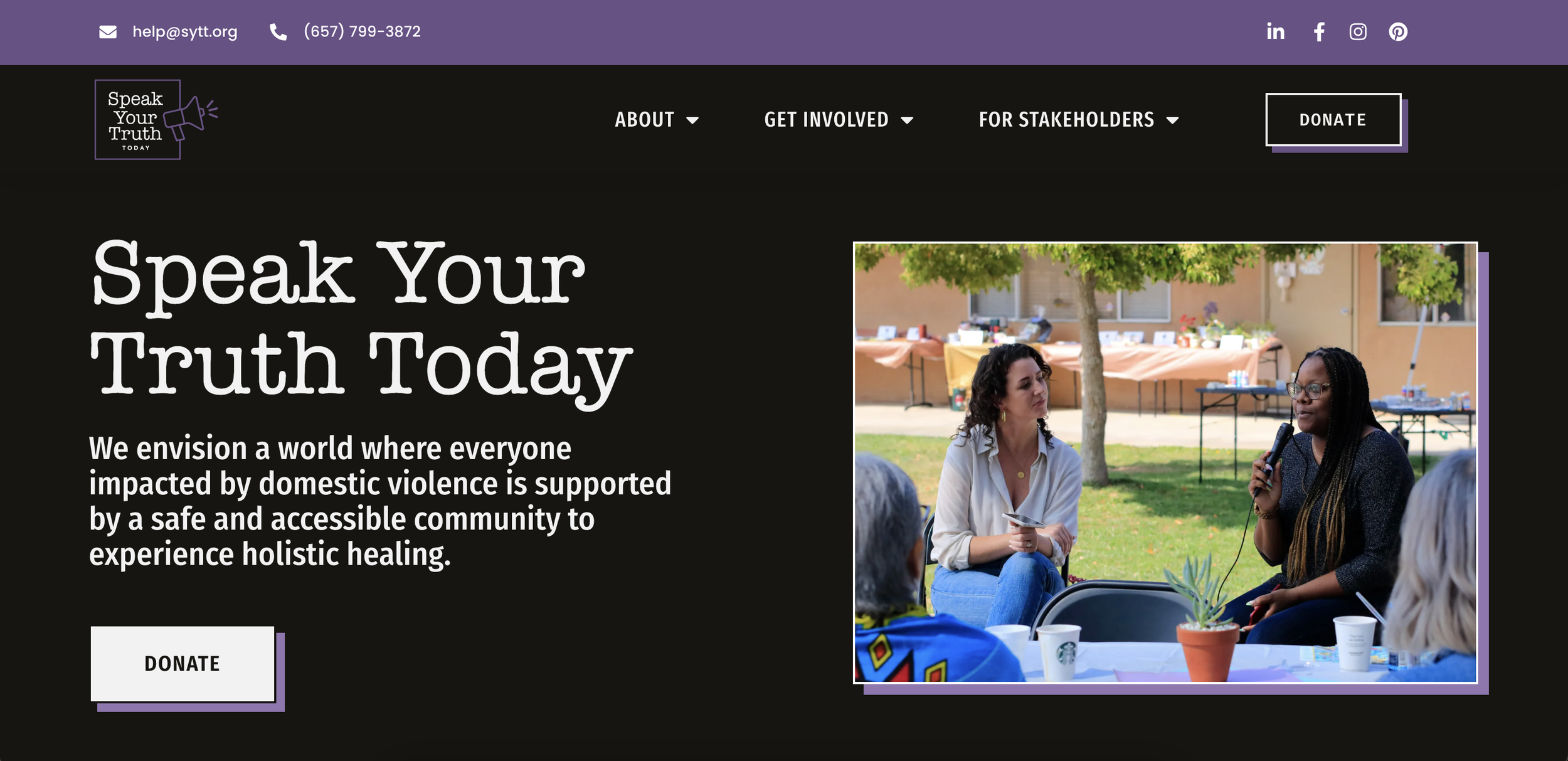 Speak Your Truth Today (SYTT) is a non-profit organization supporting survivors of domestic violence. They envision a world where everyone impacted by domestic violence is supported by a safe and accessible community to experience holistic healing.