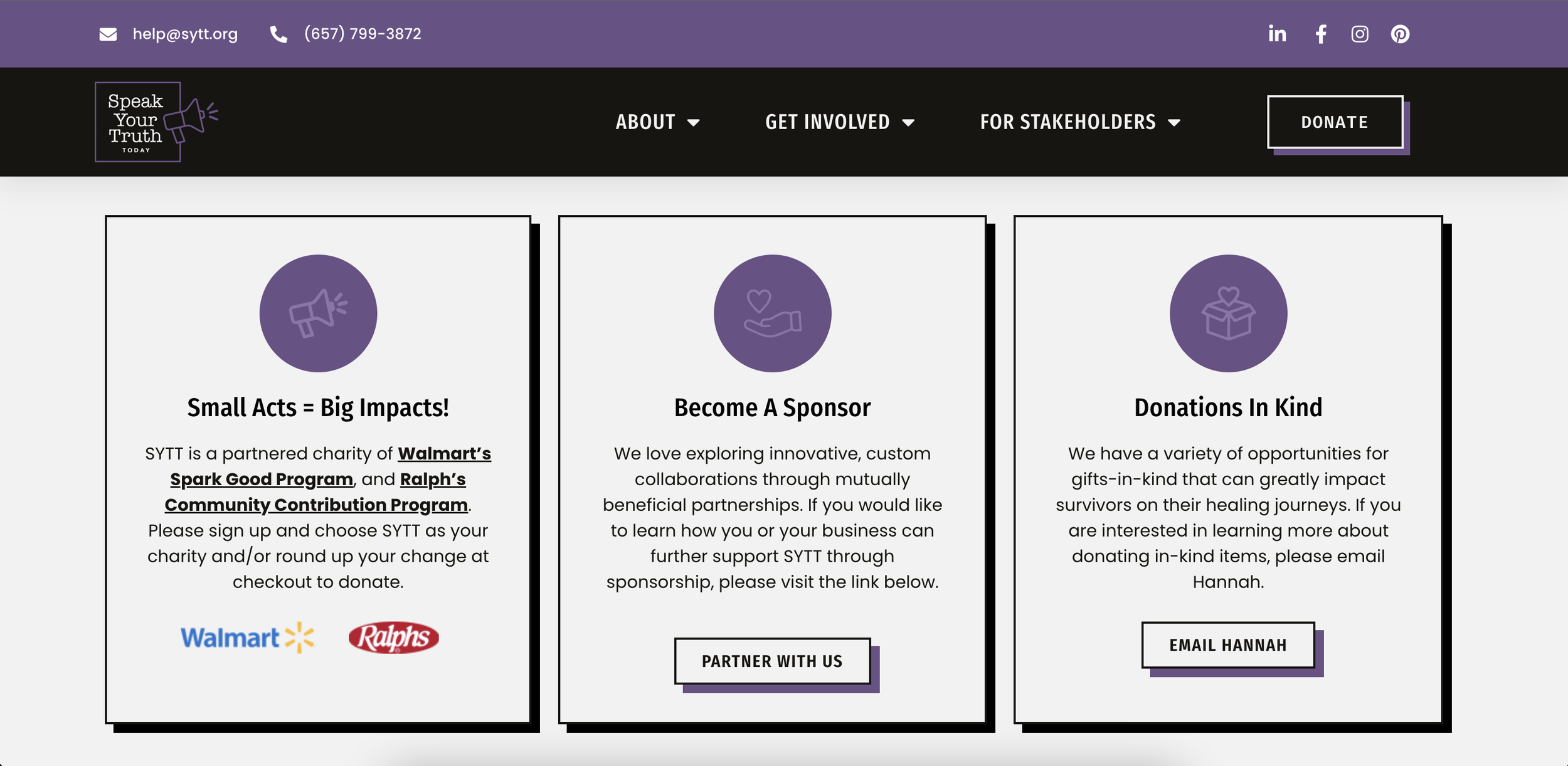 I worked directly with the Founder and Executive Director, Hannah Hollander, to design SYTT’s organization website back in 2023, and I’m still actively maintaining it. This website is one of two they have, but this is the official one used to show who they are as an organization. SYTT has become one of my long-time contracts, and I enjoy any chance I get to work with Hannah and her amazing team.
